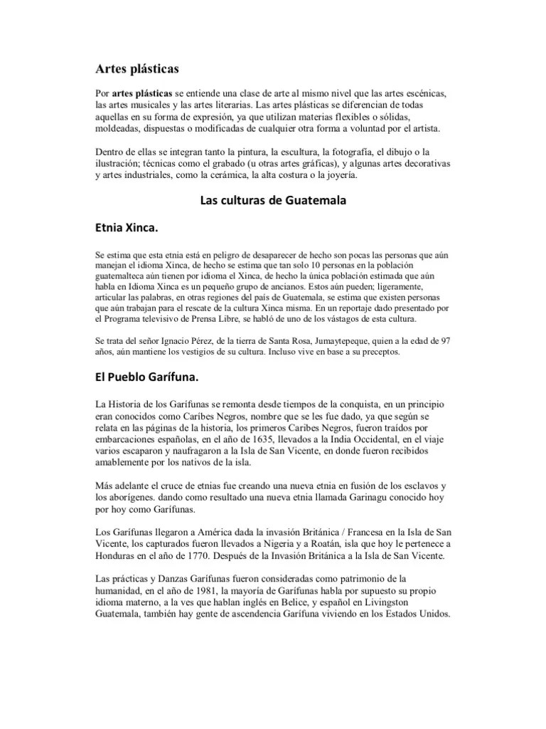 Está dirigido a todos aquellos que deseen descubrir su talento a través de las distintas artes plásticas, que sean... Las artesanías guatemaltecas son elaboradas con materiales típicos, muchos guatemaltecos se dedican a crearles y luego comercializarlas. Ha participado en exposiciones individuales, colectivas e intervenciones artísticas en centro américa. 23.10.2012 · las artes plásticas en guatemala. Scribd ist die weltweit größte soziale plattform zum lesen und veröffentlichen. Está dirigido a todos aquellos que deseen descubrir su talento a través de las distintas artes plásticas, que sean.. 23.10.2012 · las artes plásticas en guatemala.